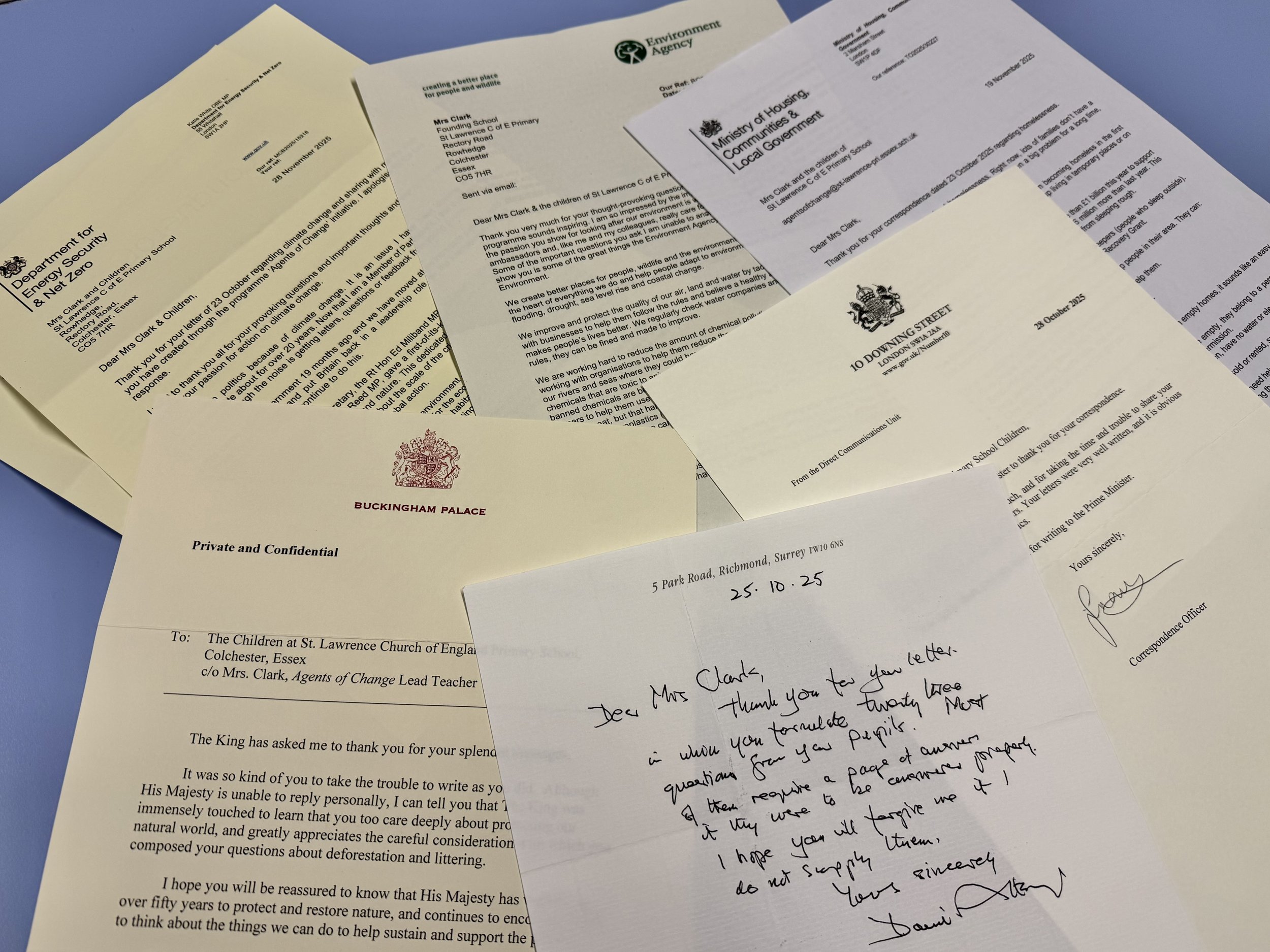 But perhaps the most exciting part is what happened next. After writing their questions, the pupils decided to send their letters out into the world — and incredibly, the world wrote back. They have received responses from King Charles, Sir David Attenborough, local councillors, government ministers for housing and the environment, the Prime Minister, and even The Environment Agency… with more replies arriving all the time. Their voices are travelling far beyond the classroom, reaching people in positions of real influence. Our young Agents of Change set out to make themselves heard — and they’ve done exactly that.